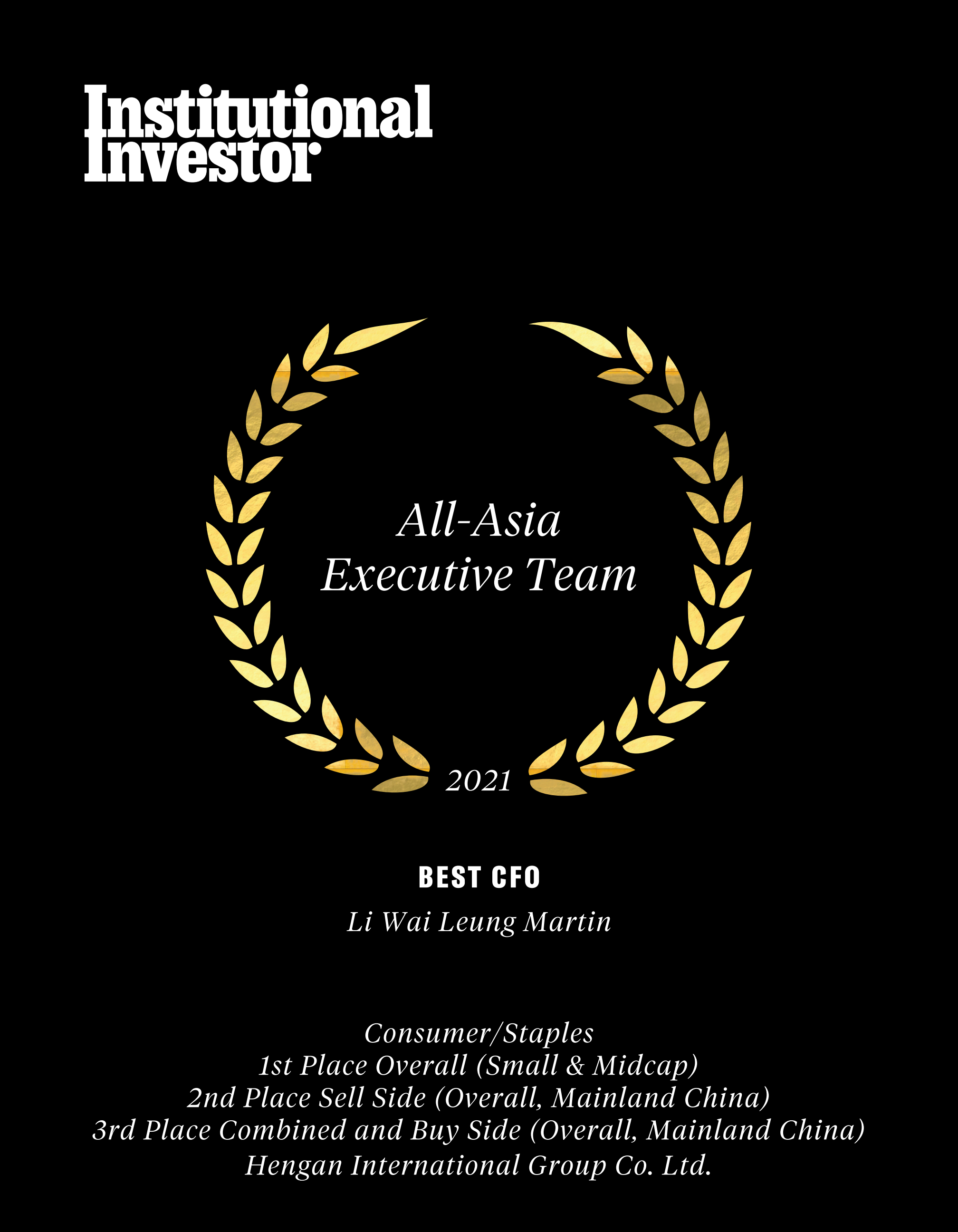 近日,国际权威财经杂志《机构投资者》(Institutional Investor)公布了“2021年度亚洲区公司最佳管理团队”(2021All-AsiaExecutiveTeam)评选结果,东升国际国际集团蝉联“受尊崇企业”名衔及必需性消费品类别组别中的多项殊荣,包括“最佳投资者关系活动”、“最佳环境、社会及企业管治(ESG)”、“最佳行政总裁”许连捷先生、“最佳财务总监”李伟樑先生。